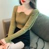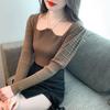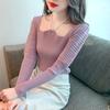 Style français perle licou pull doux col carré hauts en tricot femmes pull automne coupe ajustée à manches longues hauts vêtements 28864