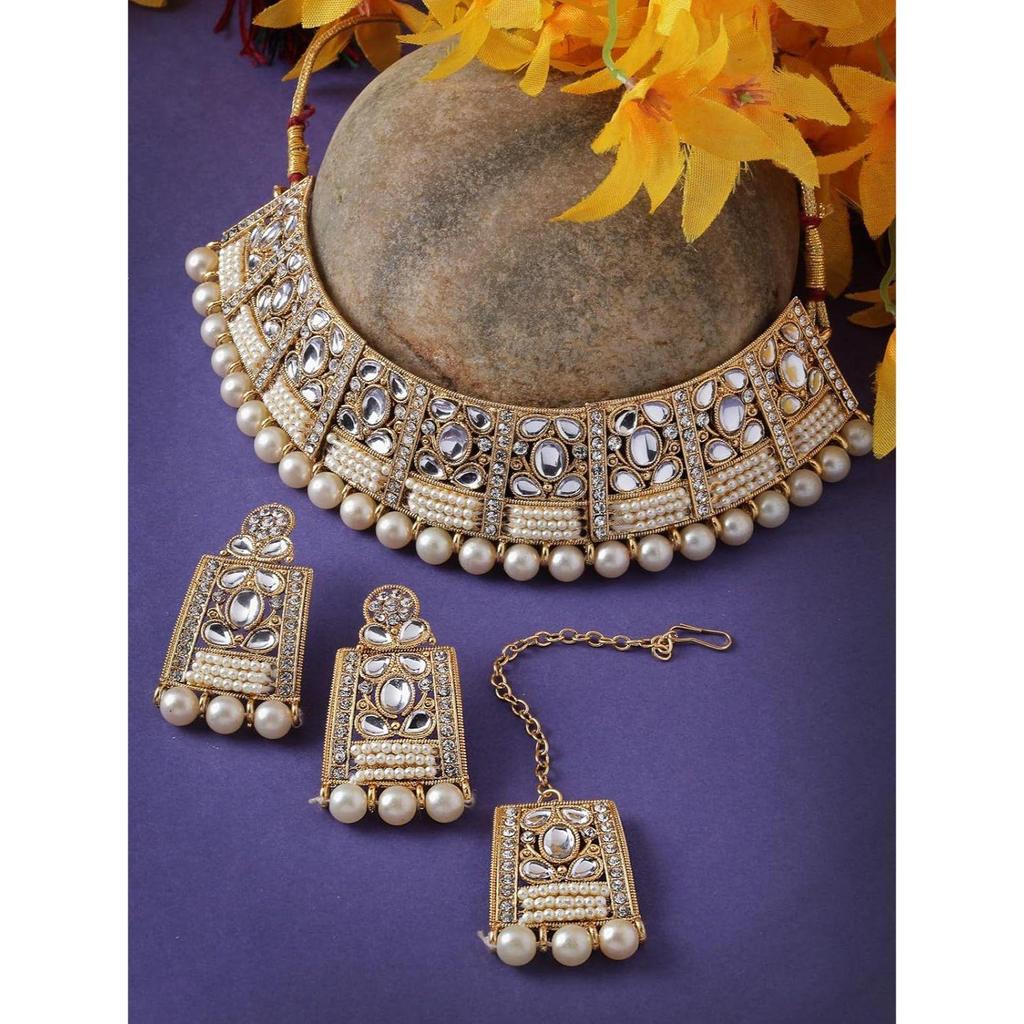 Sukkhi Adorable ensemble de collier ras du cou en pierre rose Rani clouté de perles pour femme