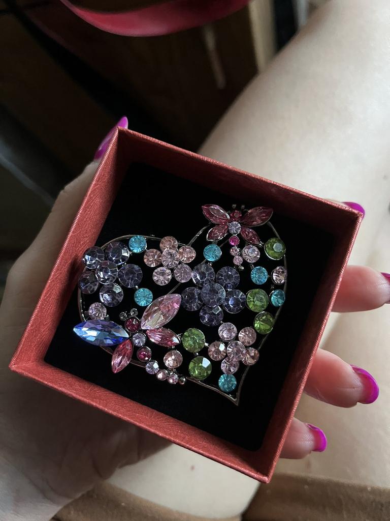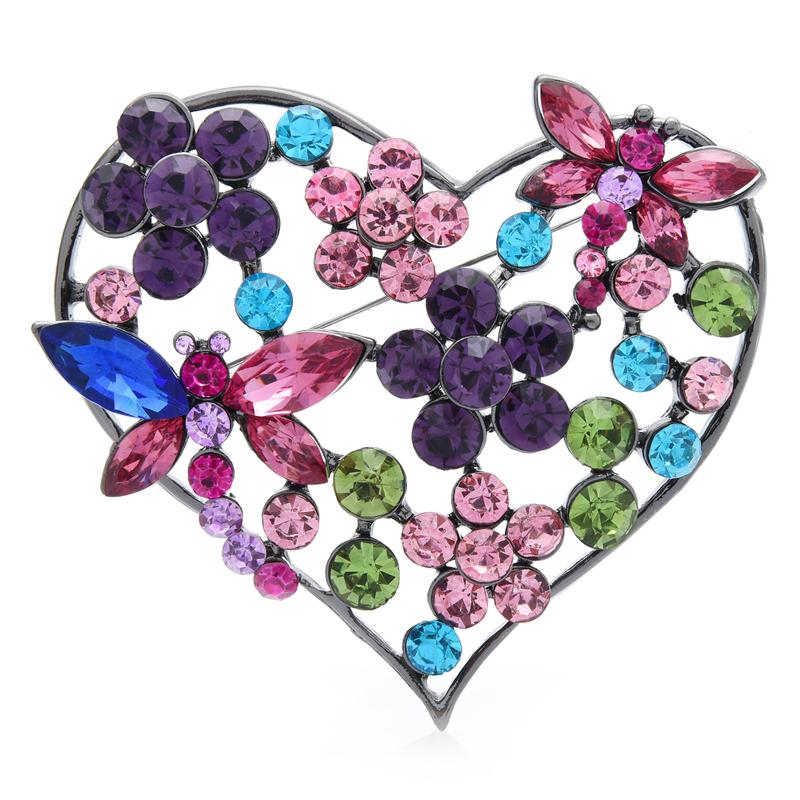 Wuli & baby – grandes broches en forme de cœur et de fleur en strass pour femmes, multicolore, scintillantes, pour fête d'amour, décontractées, cadeaux