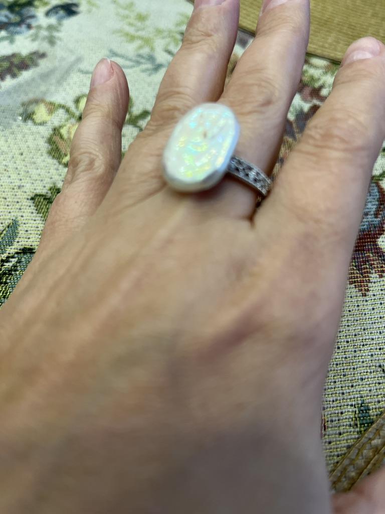 LSOOYH Grandes bagues baroques en perles d'eau douce naturelles pour femmes, bague de fête classique de couleur argent, bijoux en perles