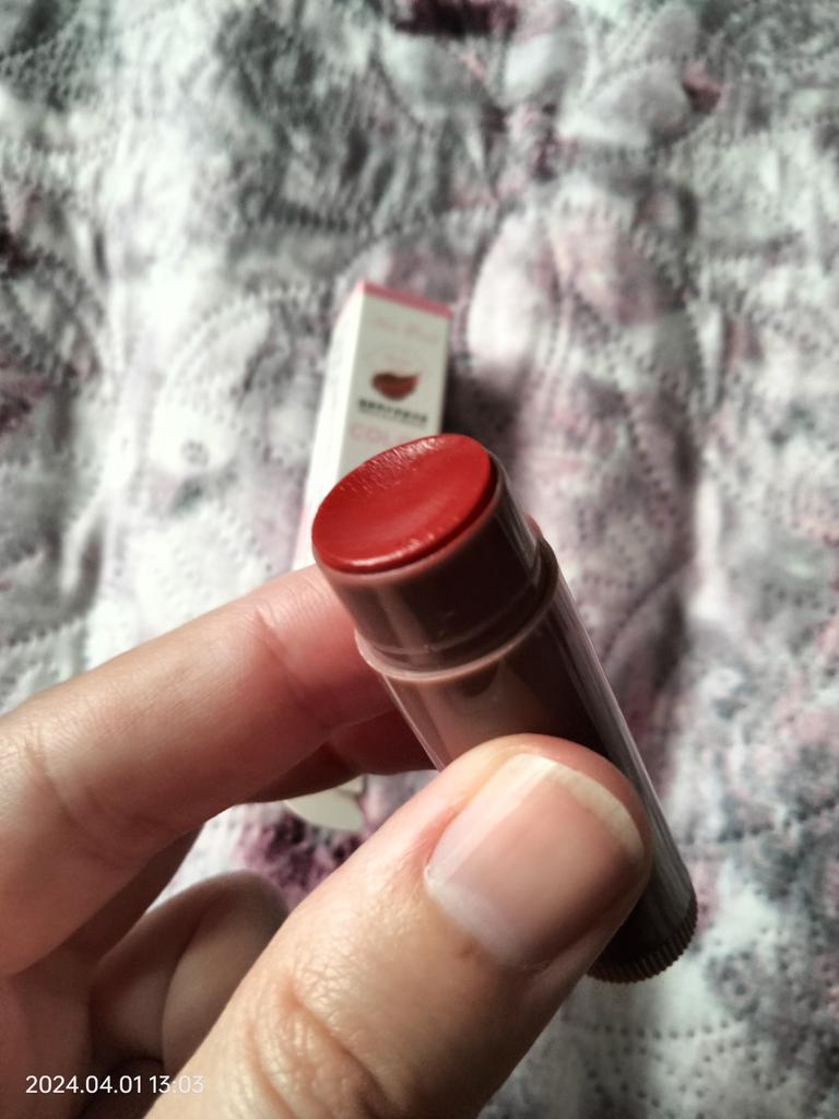 Bon rouge à lèvres, met en valeur la vraie couleur des lèvres. Ça sent très bon (cerise)
