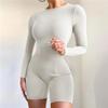 Combinaison barboteuse tricotée pour femmes, body de gymnastique, short d'entraînement, combishort à manches longues, yoga, levage des fesses, salopette de Fitness, vêtements