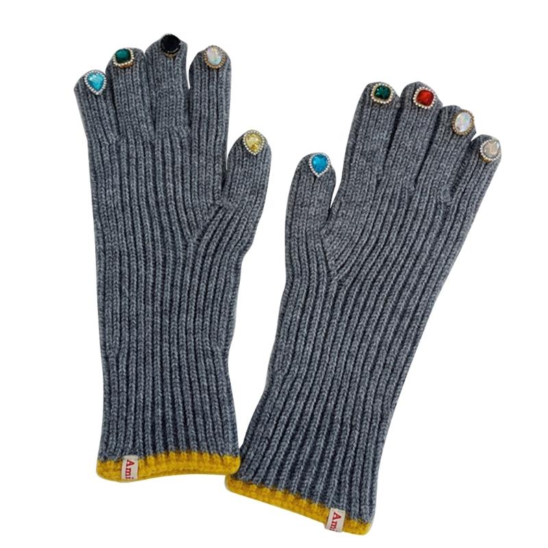 Gants en strass pour femmes, gants tricotés avec décors en strass sur le bout des doigts, gants chauds d'hiver pour doigts complets, mitaines de luxe