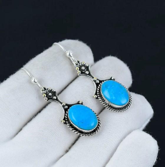 Boucle d’oreille turquoise, boucle d’oreille en argent sterling 925, boucle d’oreille faite à la main, boucle d’oreille ovale bleu turquoise, cadeau pour mère, boucle d’oreille en pierre précieuse