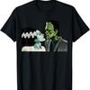T-shirts unisexes rétro en forme de coeur Frankenstein et la mariée