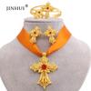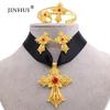 Ensemble de bijoux éthiopiens plaqués or, croix, pendentif, collier, boucles d'oreilles, bague, cadeaux de dubaï pour femmes, ensemble de mariée de mariage érythréen