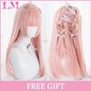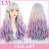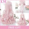 Perruques synthétiques Lolita longues ondulées noires et roses pour femmes, perruque de Cosplay avec frange, résistante à la chaleur pour Halloween et noël