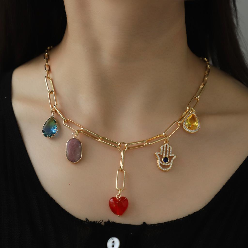 Collier de luxe léger en or véritable 18 carats avec zircon électrolytique, tendance et tempérament féminin, collection printemps et été 2024