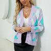 Cardigan tricoté imprimé géométrique décontracté, automne/hiver, pull contrasté, manteau polyvalent à manches longues, col en v, veste pull 30099