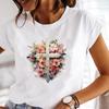 (Taille asiatique) T-shirt à manches courtes pour femme, haut décontracté, à la mode, avec imprimé floral, style mignon