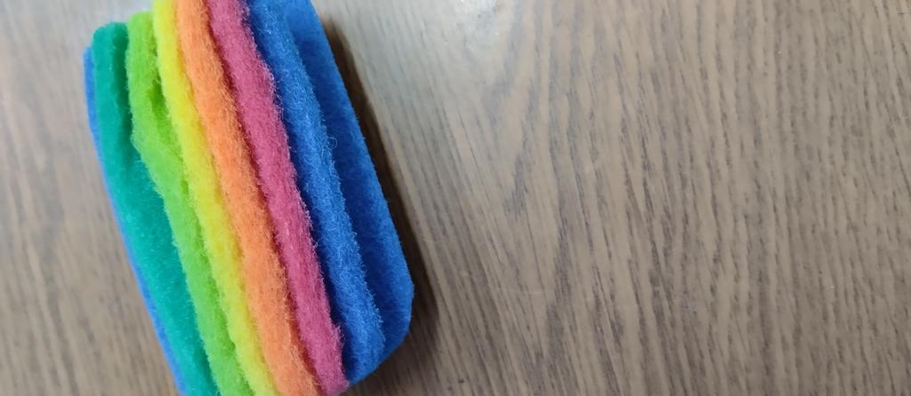 Voici ces chiffons rigides colorés en matériau comme sur les éponges à vaisselle