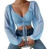 Haut pour femme manches bouffantes Sexy près du corps cordon col en v t-shirts chauds