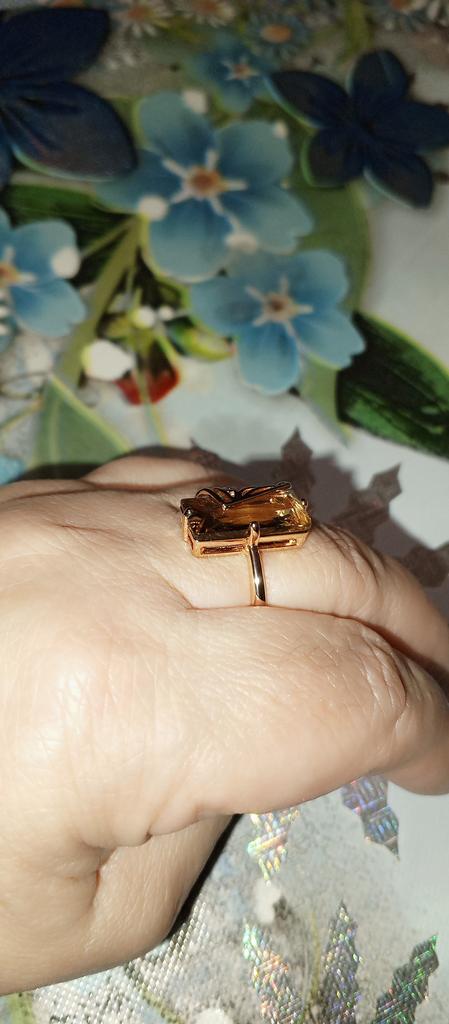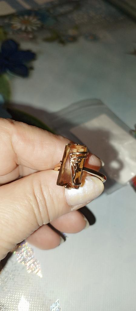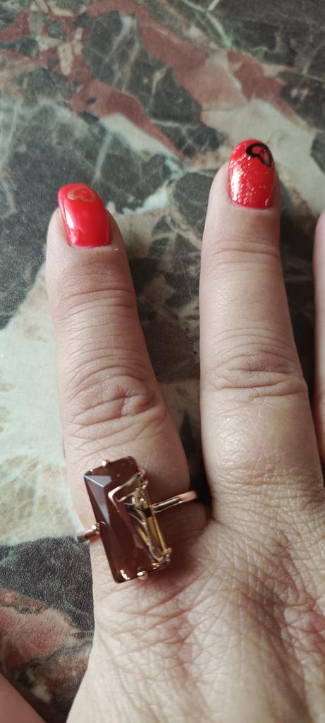 La bague couleur thé avec zircon, forme géométrique élégante, est superbe, chic, merci 😉 je recommande !!!🌷🤙🌷🤙🌷💯