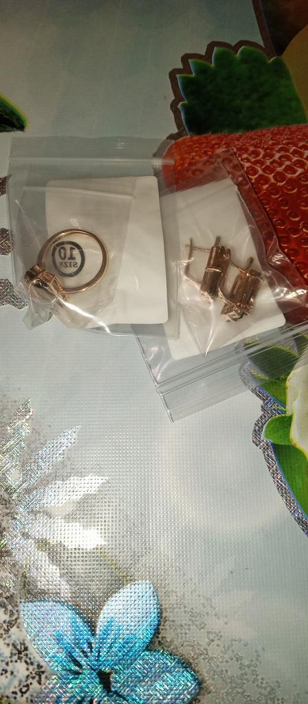 La bague est magnifique, on dirait de l'or. Je l'ai pris comme un ensemble. La taille correspond à l'index. Je le recommande.