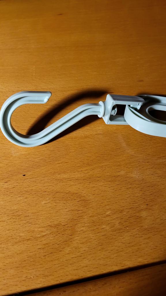 Structurellement - excellente solution fiable pour déplacer le crochet sur le cintre. Le plastique est de qualité et sans odeur. Merci.