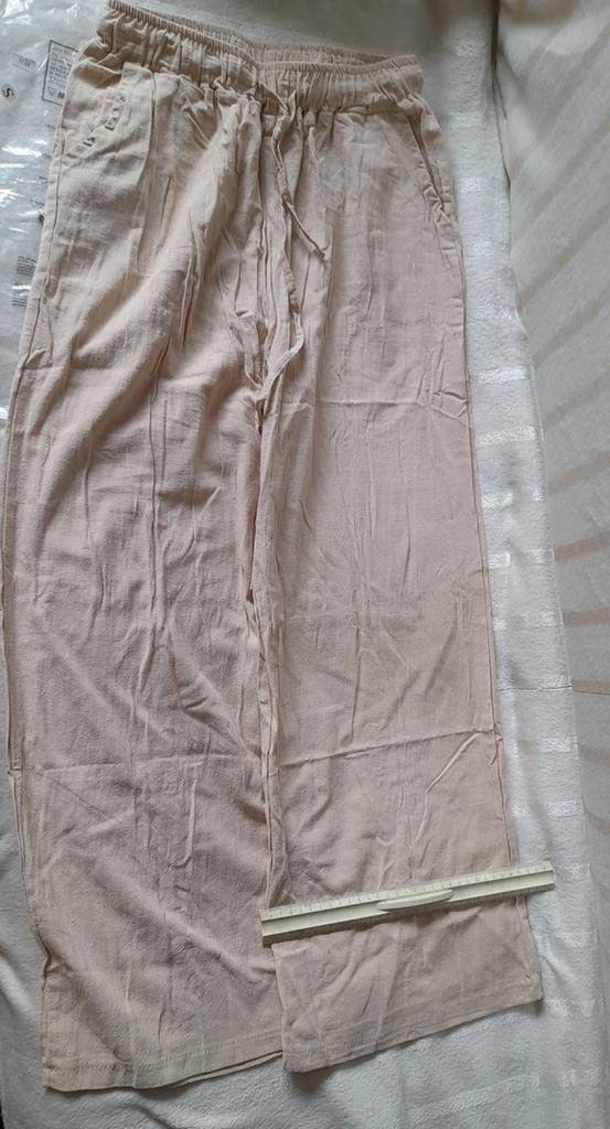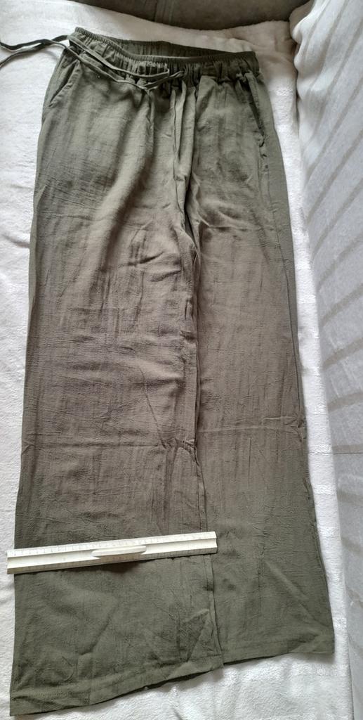 Excellent pantalon en lin. Correspond entièrement au tableau des tailles. J'avais hâte de les essayer... alors, que les invités me pardonnent, je les ai essayés sans les repasser, pardonnez-moi...