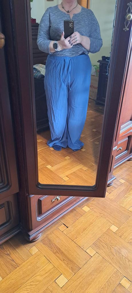 J'ai beaucoup aimé le pantalon-jupe, le tissu est léger, certes synthétique, mais agréable au corps. Pour ma taille de 162 cm, c'est long.