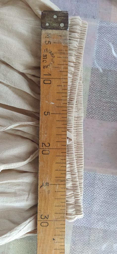 La taille et correspond à la photo, coton + polyester, le volume (largeur de jambe) du tissu est plus petit que sur la photo, ils ressemblent à des pantalons ordinaires, sans plis supplémentaires. La largeur de la règle est de 30 cm. Satisfaite de la commande.