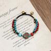 BLINGBAY Bracelet de Perles pour Femmes Rétro Népalais Bracelet de Perles de Cuivre Ancien pour Femmes Style Ethnique Tibétain Personnalité Simple Tressé Bleu Bracelet Cadeau