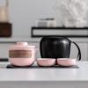 1 Set Service à Thé de Voyage Portable Service à Thé de Voyage d'Extérieur 1 Pot 4 Tasses Théière Tasse à Thé Pouce Porcelaine Rose Camping d'Extérieur pour Femmes Sac de Rangement Portable Voyage