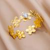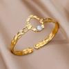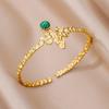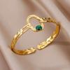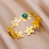 Bracelet manchette en acier inoxydable pour femmes, pierre verte artificielle, couleur or, accessoires de bijoux Vintage