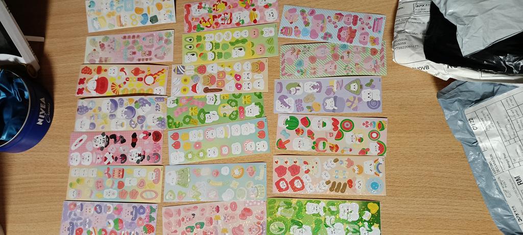Autocollants pour scrapbooking 💫 J'ai commandé pour le travail, ça me sert💯 Images vives et mignonnes, bonne qualité. 20 feuilles d'autocollants de différentes tailles 🌠 C'est avantageux en termes de prix.