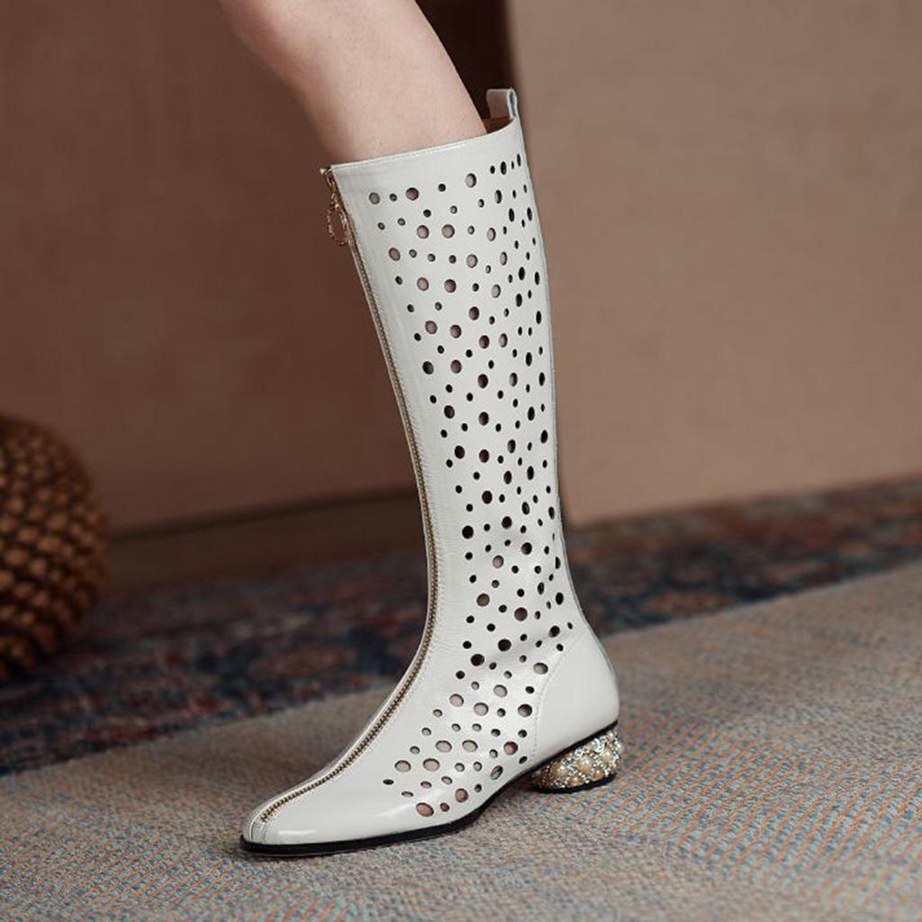 Krazing Pot – bottes d'été à bout rond en microfibre, décorations creuses à la mode, bottes d'été, cuissardes hautes