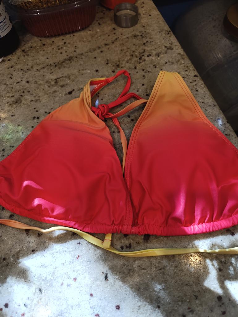 Le maillot de bain semble être de tailles différentes : le soutien-gorge est de taille 42 et la culotte est de taille 52. La photo montre que le haut et le bas ne sont pas proportionnés, bien que l'étiquette de taille soit la même. Le maillot de bain en lui-même est bien, bien fait, mais sa taille disproportionnée a tout gâché. En comparant le maillot de bain d'un ensemble et ce maillot de bain, la différence est évidente.