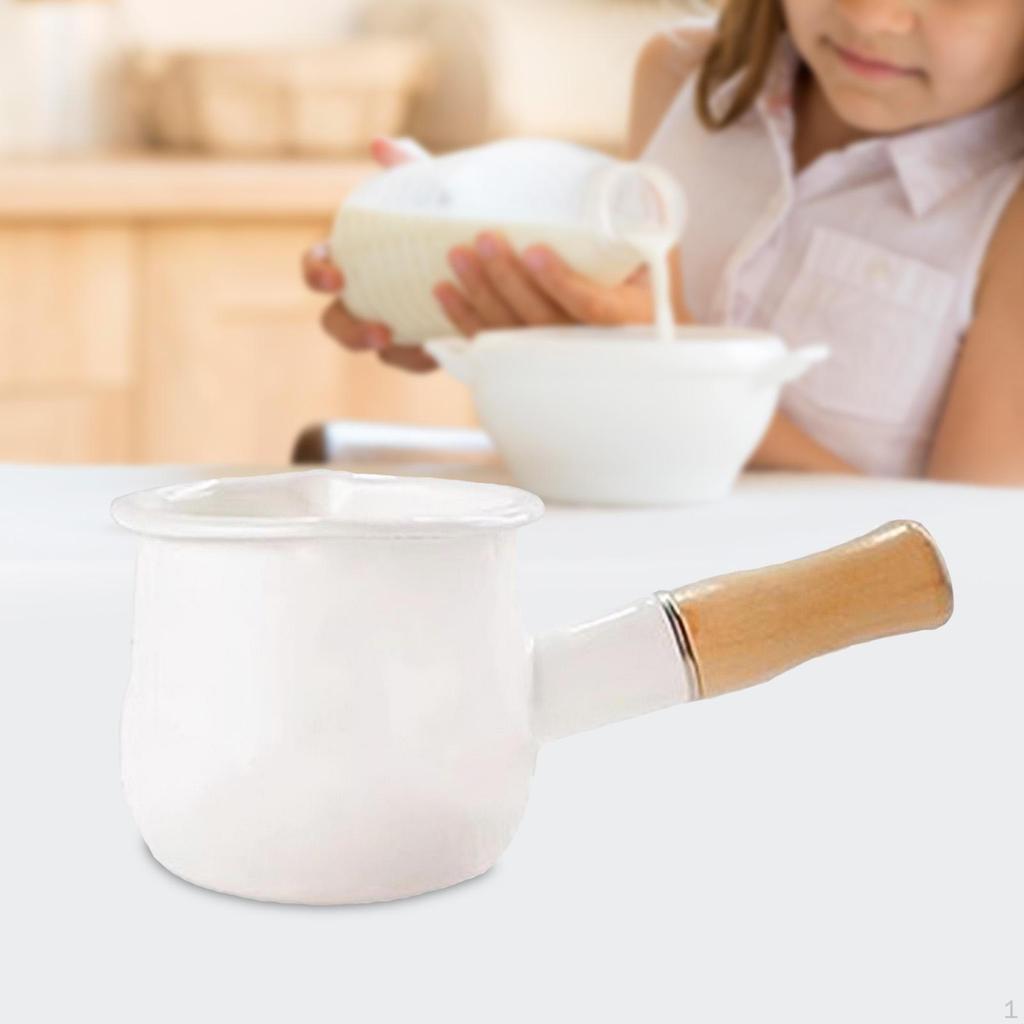 - 【Multifonction】La petite marmite à lait en émail est idéale pour réchauffer les sauces, le beurre, le lait, la soupe, les nouilles pour bébé, le petit-déjeuner, le café, les céréales ou faire fondre le chocolat, etc.. Simple et élégant, s'adapte à n'importe quel décor de cuisine.
