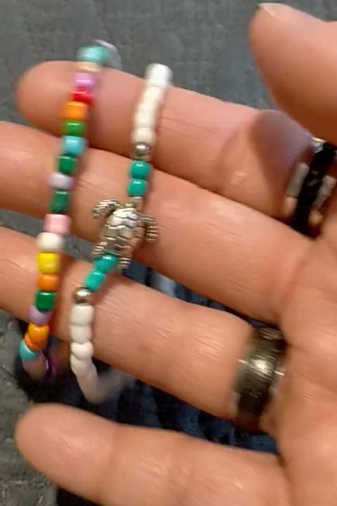 2 pièces plage coloré arc-en-ciel couleur tortue pendentif Style bohème empilable perles bracelets de cheville été