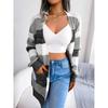 Automne et hiver décontracté couleur contrastée rayé poche pull à manches longues Cardigan veste