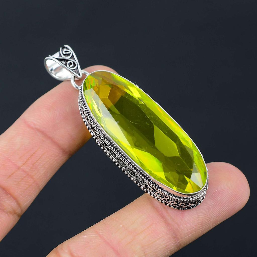 Pendentif Pierre Précieuse Topaze Citron Argent Sterling Massif 925 Pendentif Bijou Cadeau Pour Unisexe LG-014