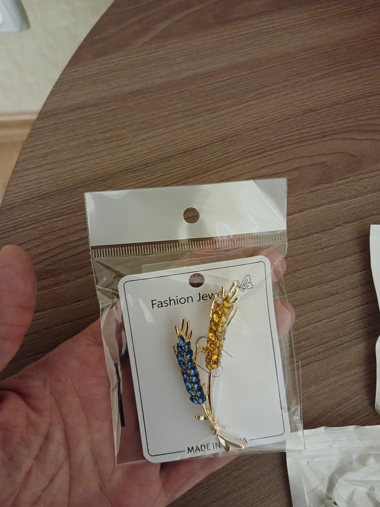 Une magnifique broche, jaune et bleue, comme les étendues infinies et le ciel bleu de l'Ukraine. Merci.