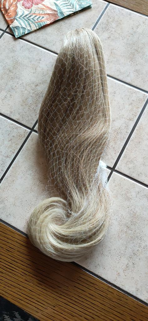 Postiche pour cheveux, très bien fait. On peut faire une tresse ou avoir une queue de cheval. Les cheveux peuvent être coupés à la longueur souhaitée. Prix très bon.👍😀
