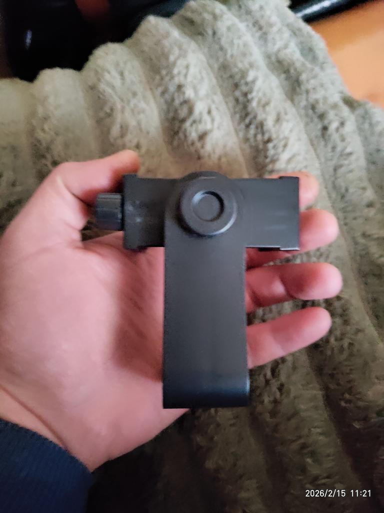 Il convient de noter que la taille du téléphone ne peut pas dépasser 100 mm, sinon vous ne pourrez pas le serrer dans le support. Les mâchoires du support sont caoutchoutées. Le support se fixe au support par pas de 15 degrés et peut être retiré et utilisé séparément, un insert fileté est prévu. Dans l'ensemble - bon marché et pratique.