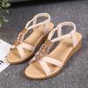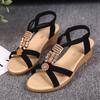 Rimocy Sandales Compensées Bohémiennes Femmes Été Lanière Cheville Perles Cordon Chaussures Romaines Femme Décontractées Talons Moyens Plage Sandalias Mujer