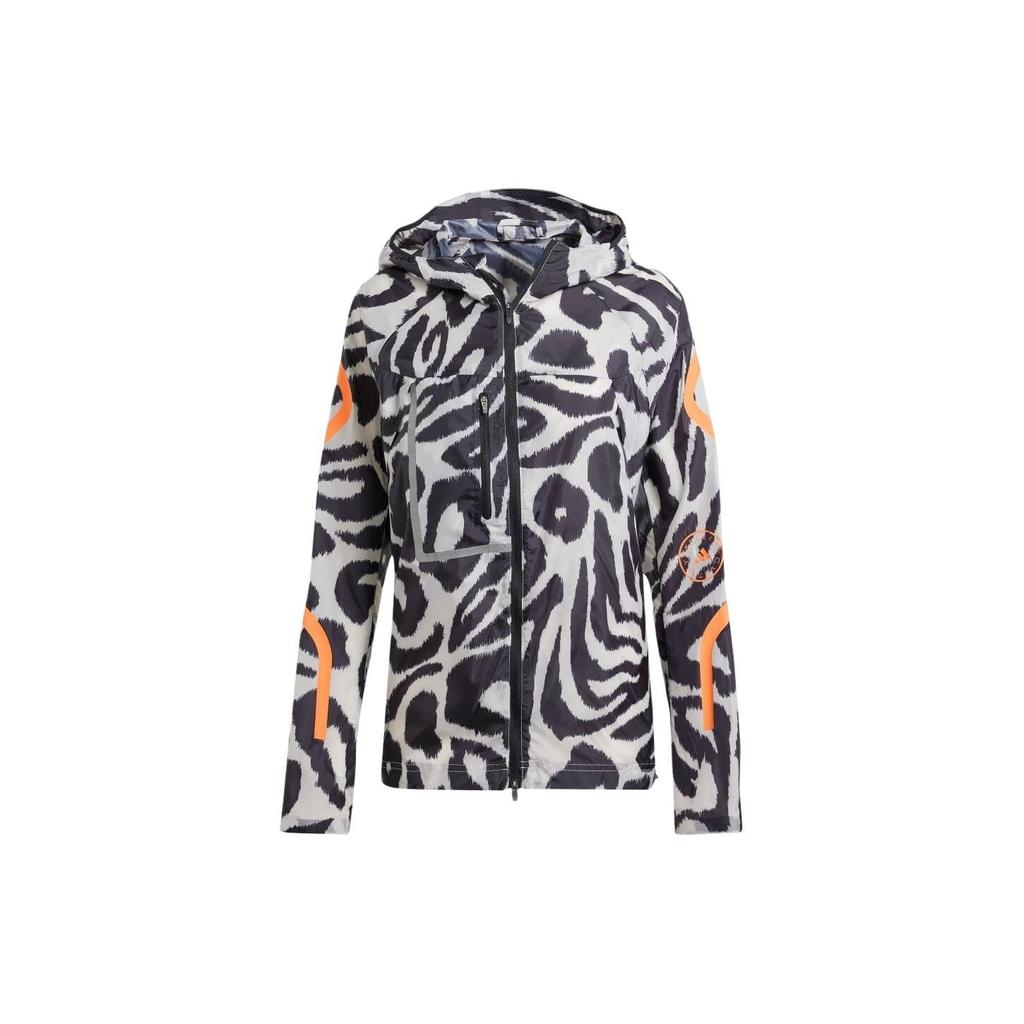 Adidas Allover Print Fitted Hooded Long Sleeve Jacket Women Outerwear Black IQ4481