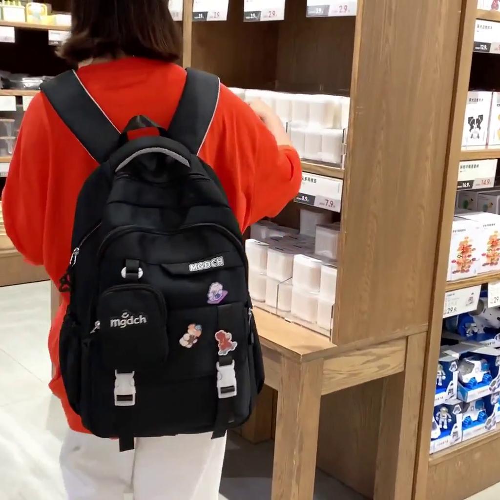 Female Color Block Backpack Student Campus Schoolbag Male Large Capacity Backpack with Coin Purse