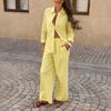 Ensemble de costume élégant pour femmes: Améliorez votre garde-robe avec cet ensemble de costume chic deux pièces pour femme, doté d'une coupe ample et confortable qui respire un style sans effort.. L'ensemble comprend une chemise à manches longues à revers, ornée d'une couleur unie tendance, et un pantalon large pour un look moderne.