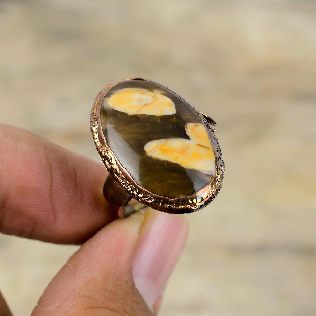 Peanut Wood Jasper Ring Electroformed Copper Ring Adjustable Rings Electroformed Jewelry Gemstone Ring Copper Jewelry For Gift Handmade Ring