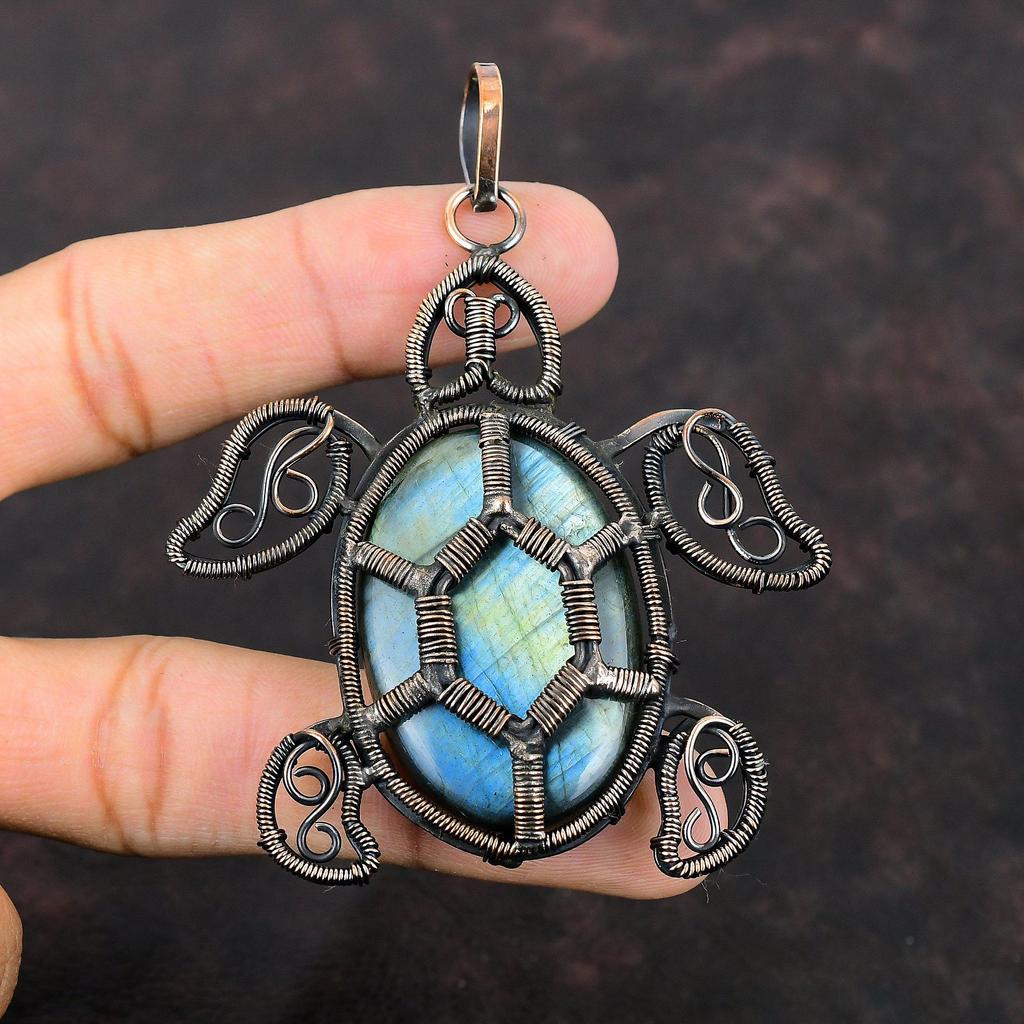 Pendentif en pierre précieuse labradorite Pendentif enveloppé de fil de cuivre Bijoux en cuivre faits à la main Très joli pendentif tortue Bijoux délicats Cadeau de fiançailles
