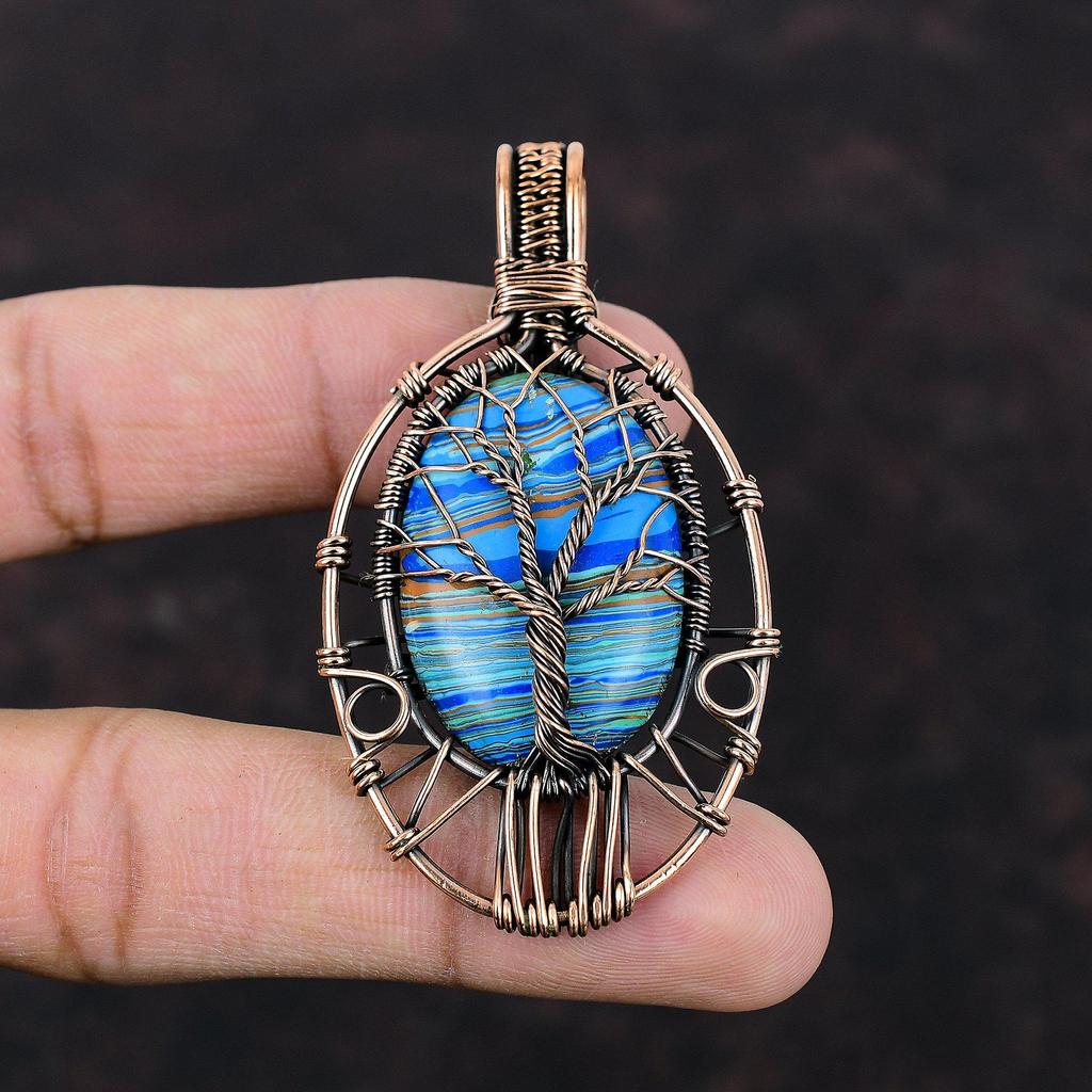 Pendentif arbre de vie arc-en-ciel Calsilica Pendentif enveloppé de fil de cuivre Pendentif en pierre précieuse Pendentif fait main Cadeau pour elle Bijoux enveloppés de fil de cuivre