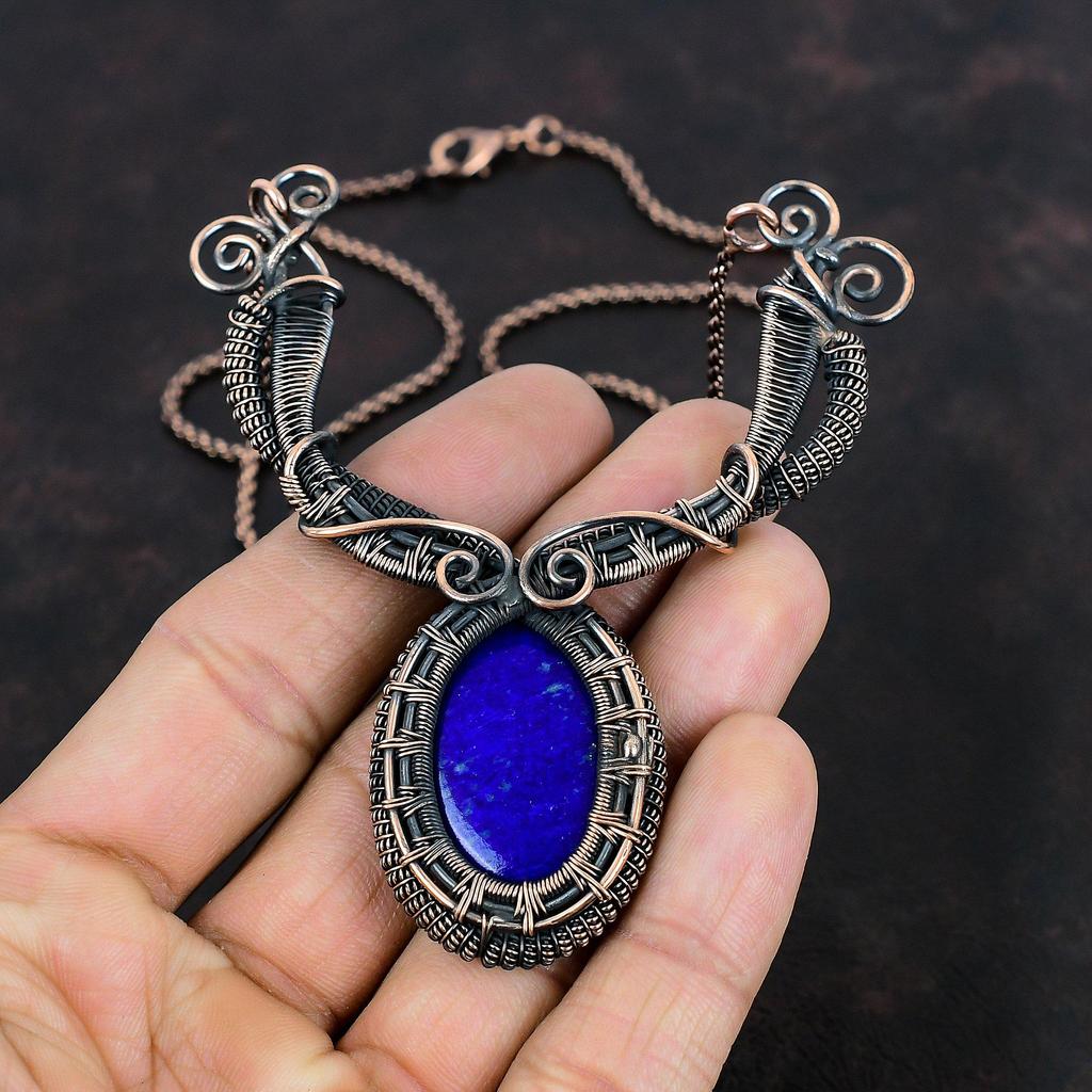 Collier Lapis Lazuli Collier Enveloppé de Fil de Cuivre Bijoux en Pierre Précieuse Collier de Créateur Bijoux Enveloppés de Fil de Cuivre Collier Fait Main Pour Cadeau