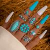 Ensemble de 8 bagues turquoise de style ethnique rétro avec plumes sculptées et incrustées