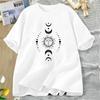 T-shirt à manches courtes et col rond pour femme, décontracté et humoristique, avec imprimé lune, étoiles et soleil, à la mode, pour l'été