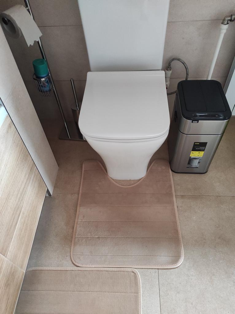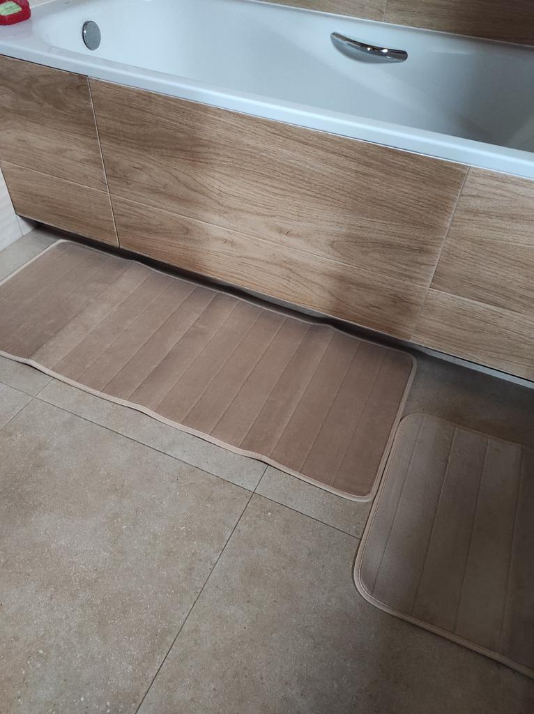 C'est agréable de marcher sur les tapis, ils sont doux. Mais ils glissent sur le grès cérame ! De plus, la découpe pour les toilettes n'était pas adaptée, il a fallu la retailler et refaire le bord (voir photo).