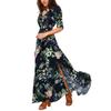 Robe longue ample à col en V et motif ethnique vintage bohème pour femme