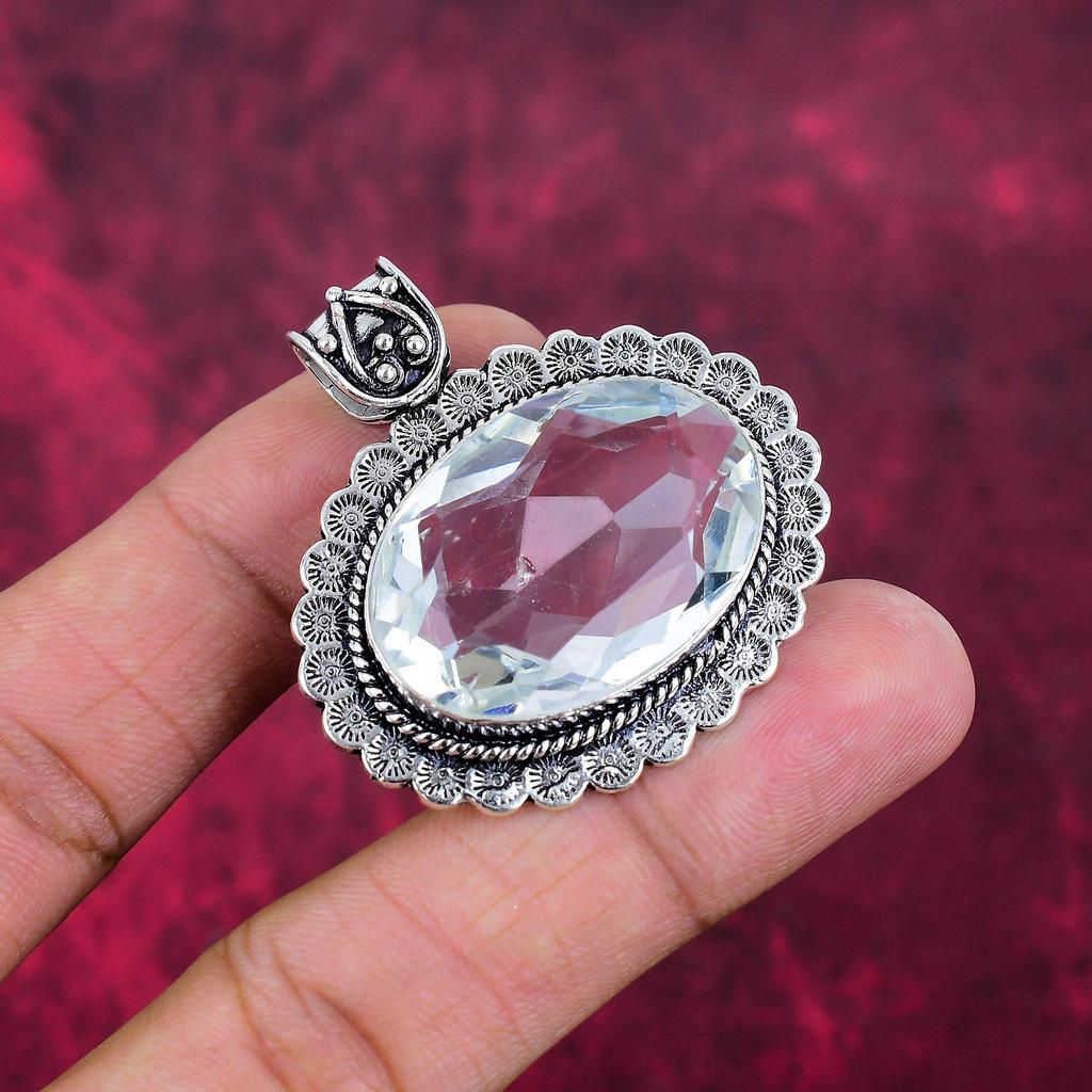 Pendentif en argent sterling massif 925 avec topaze blanche, pendentif en pierres précieuses fait à la main pour le Memorial Day