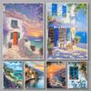 Watercolor Style Mediterranean Coast Sea Poster Seaside Landscape Prints Canvas Painting Wall Art Pictures Home Room Beach Decor