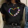 Hauts pour femmes, imprimé graffiti d'amour coloré, col rond, manches longues, t-shirt d'automne décontracté, pull slim, haut à manches longues pour femmes